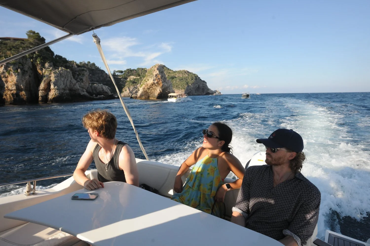 Set sail on a private photoshoot and discover Taormina from a breathtaking new perspective — aboard a boat gliding along the Sicilian coast. Surrounded by turquoise waters, dramatic cliffs, and the iconic Isola Bella, this experience combines the freedom of the sea with the timeless charm of Taormina.